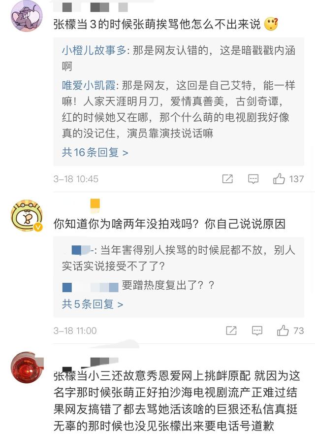 3月17日晚上7点,演员张萌在虎扑上跟大家在线互动,然而就在张萌与网友互动的过程中,又有人就把她和张檬搞混了。