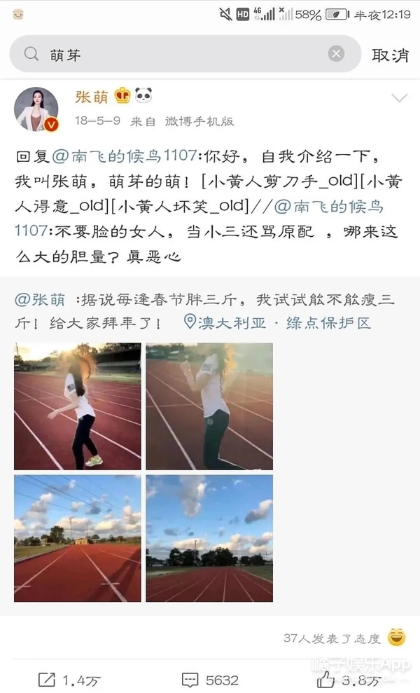 有一回张萌发微博,别人把她错认成张檬,喷她:当小三还骂原配,哪来这么大胆量?真恶心。
