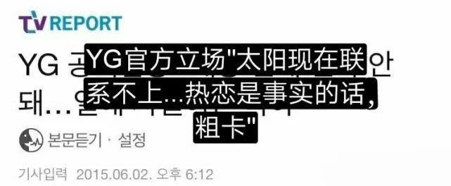 被爆出恋情的当日,太阳所属社YG回应称:热恋是事实的话,祝贺。