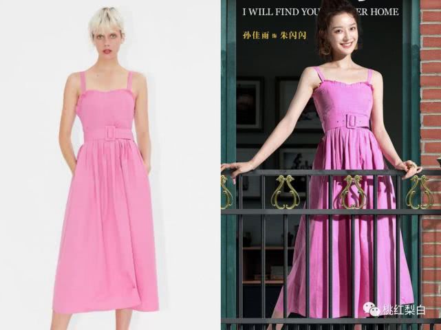 尤其是Zara,已经不止一次在她身上出镜了。 连主海报上穿的,也是Zara店内主打的这条粉色长款吊带裙。