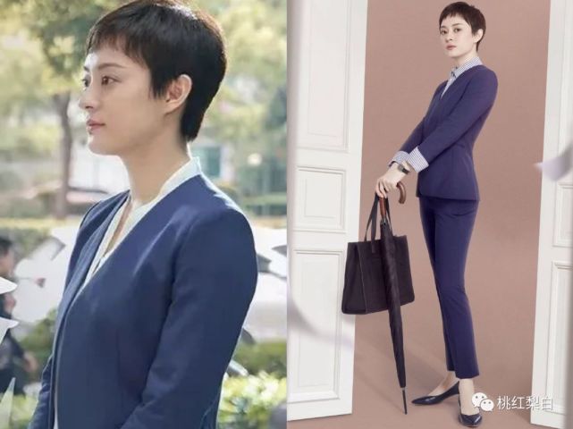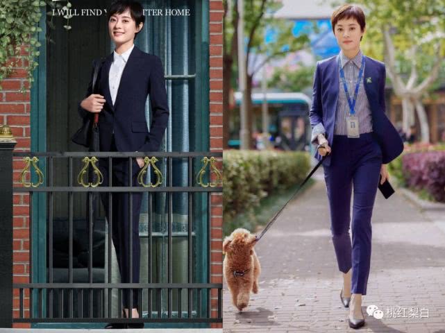 除了在门店坐班,还要随时出门陪客户看房,所以比起精致的裙装造型,房似锦上班时,身上基本都是各种显专业又方便行走的西服套装look。
