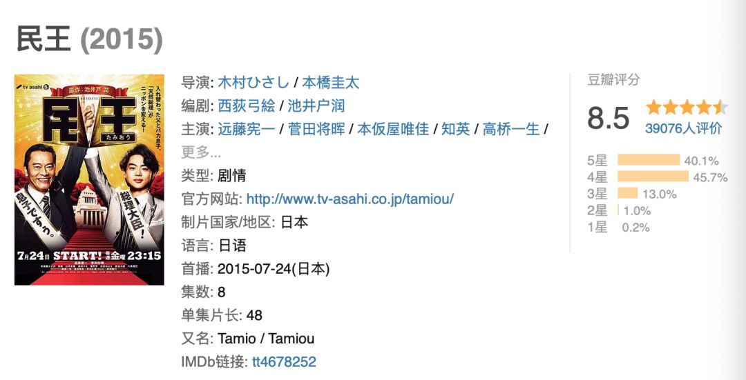 或者,我门还可以想到另一个喜剧,那就是之前的日剧《民王》
