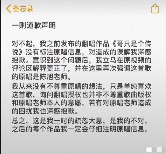 近日,歌手李浩然在翻唱歌曲《哥只是个传说》时,因未标注歌曲原创信息引《哥只是个传说》的原唱者陈旭不满。