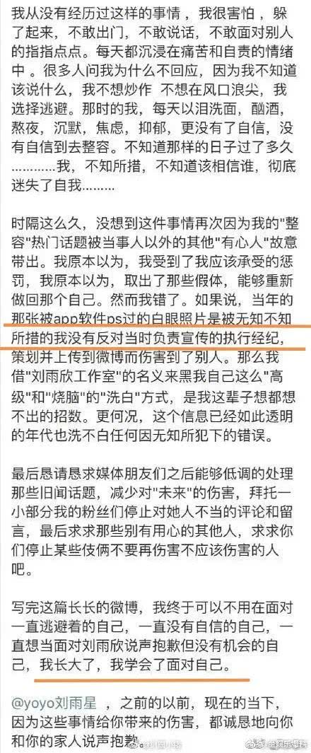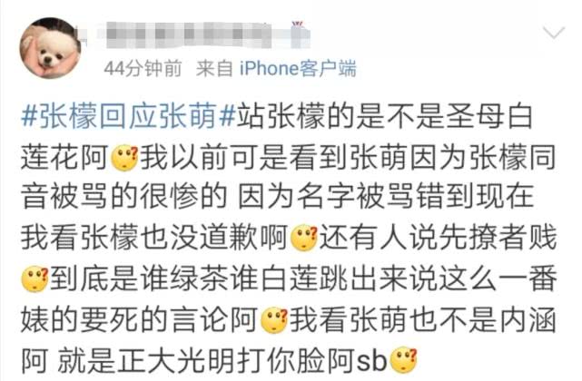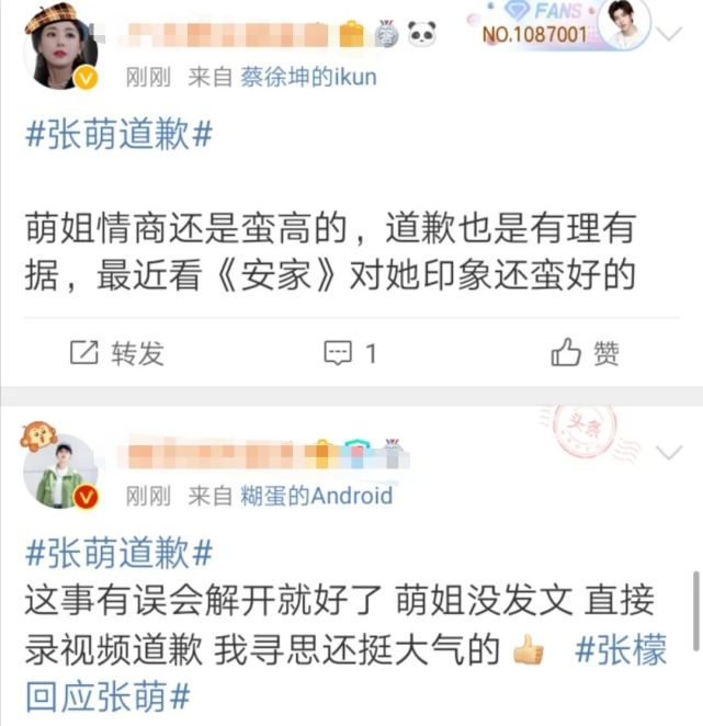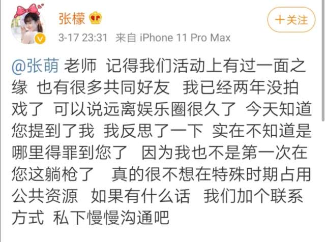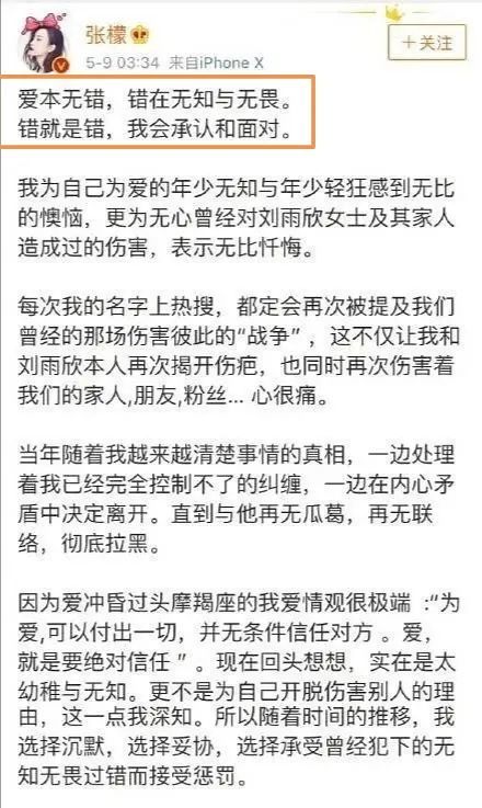 张檬也怂了,隔了两天发长微博向刘雨欣道歉。