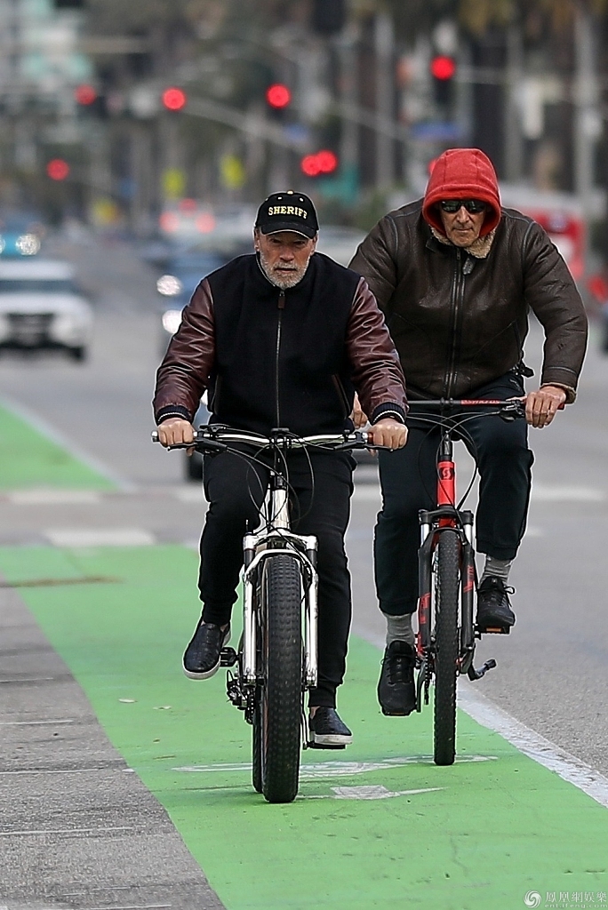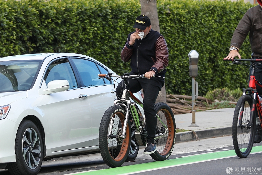 施瓦辛格边骑车边擦鼻涕。