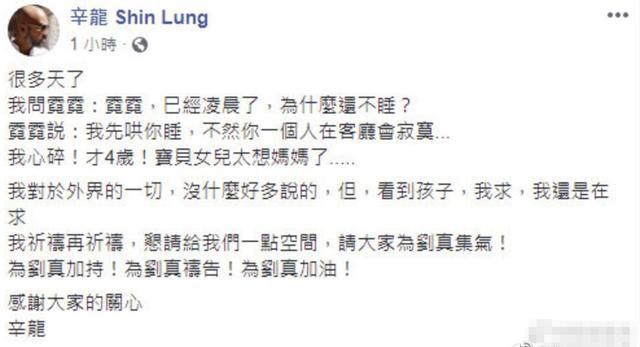 就在前几日,知情医生更是曝出了刘真目前右脑血栓中风,左边身体不能动弹,现已左半身瘫痪,情况较为严重。而刘真的老公辛龙也在个人的社交平台发文表示自己和女儿都很想刘真,自己听了女儿懂事体贴的话语,更是半夜心碎。