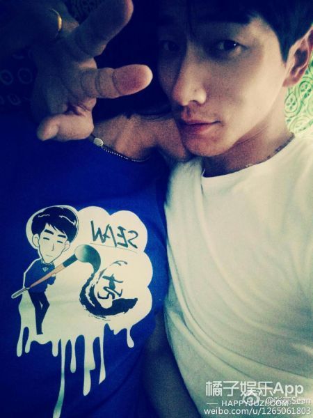 这张照片的亮点在,寇静穿的衣服,是张亮全国后援会的会服...