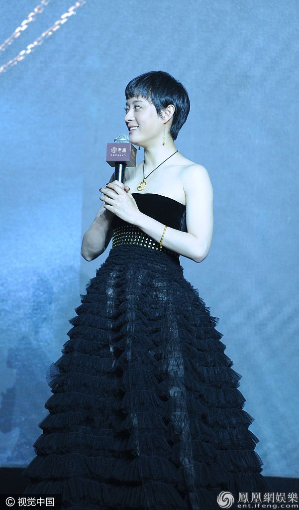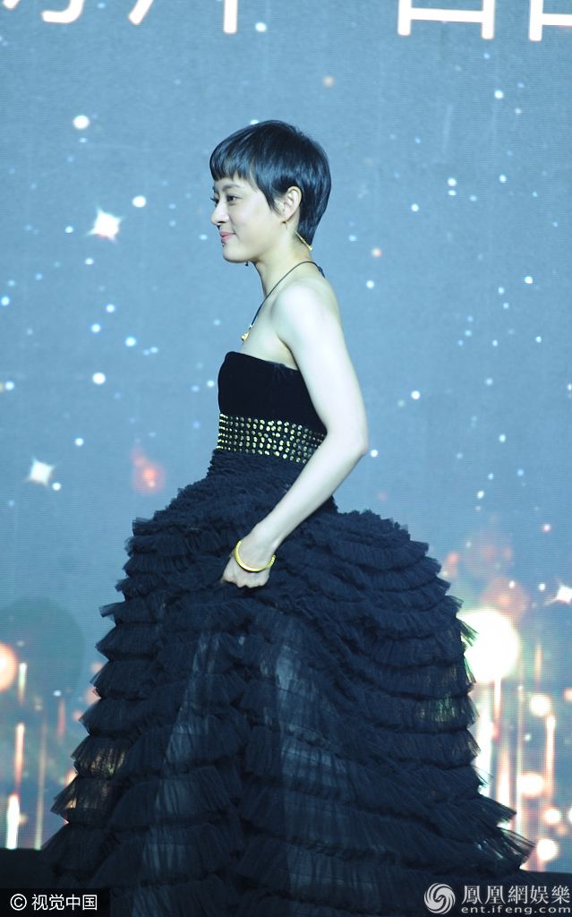 37岁孙俪生两娃后身材纤细气质佳,留精致短发穿抹胸礼裙秀香肩锁骨。 图片来源:pp/视觉中国