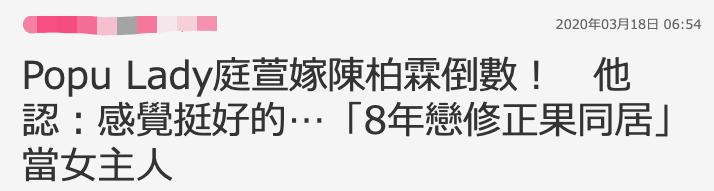 陈柏霖和SHE的师妹团"Popu Lady"成员陈庭萱的恋情已传了8年,只不过算双方都不愿承认,一律以"好朋友"回应。直到2019年,陈柏霖才终于松口认爱,还用“感觉挺好的”形容2人恋情,近日两人又被拍到早已同居,看来两人的好消息指日可待。