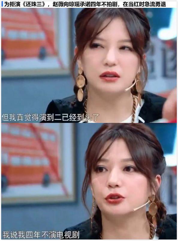 其实,这样的分歧当时也让琼瑶十分不快,特别是赵薇婉拒《还珠3》的邀约后,她一度认定小燕子是红了就想放飞,曾以“傻小燕子精赵薇”来评价这员曾经和她情同母女的爱将。