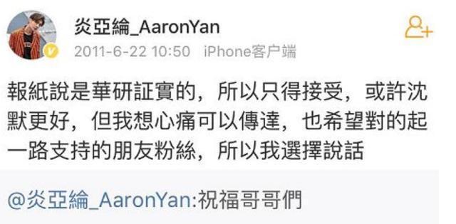 当初解散的时候,炎亚纶曾发过这样一条微博:祝福哥哥们。还说他也是通过报纸新闻得知团队被解散。