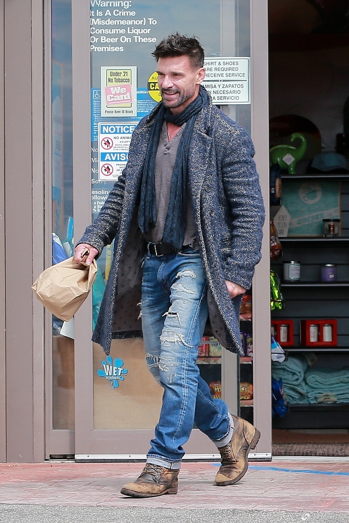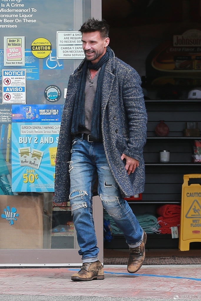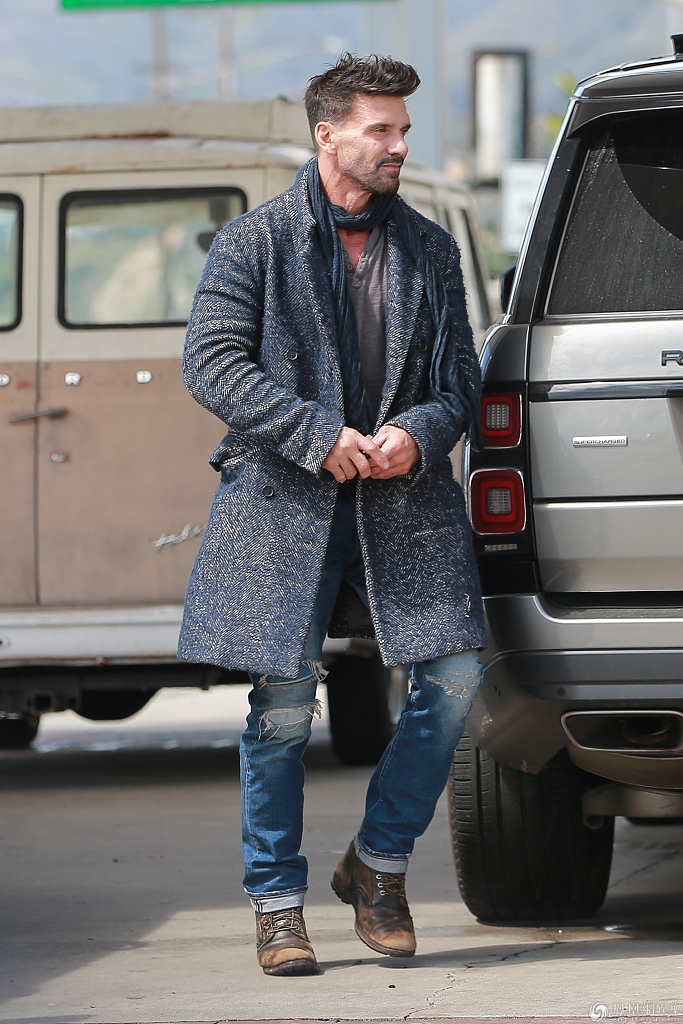 弗兰克·格里罗戴围巾搭配灰色大衣,尽显型男气质。