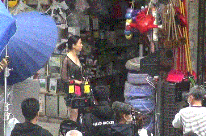 宣萱罕见的性感装扮,吸引了不少路人驻足围观。顶着众人视线,宣萱拿出最好的状态,迅速拍完这场戏,然后披上外套遮挡春光,身边的工作人员也举着大伞,阻挡路人拍照。