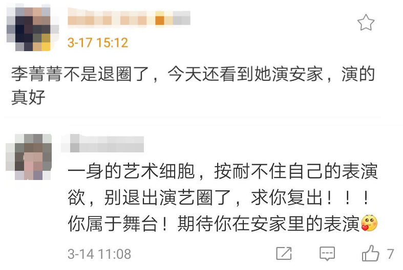 李菁菁的片段播出后,不少观众都感叹想不到还能看见她演的戏,演技实在太好了,还有很多希望她复出的声音。