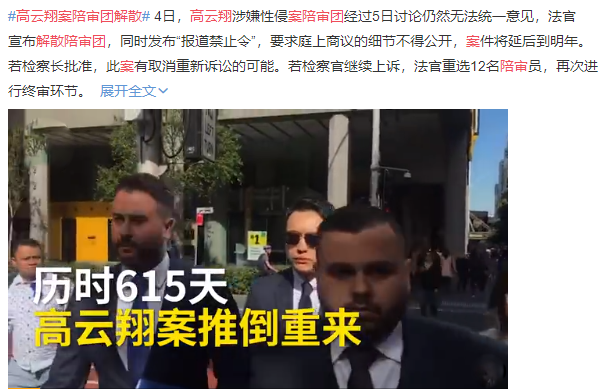 这样的结果不禁让人想到当时高云翔一审时的情形,在陪审团商议几日之后,依然没能达成一致,最终法官无奈宣布解散陪审团,案件重审。希望这次陪审团慎重考虑,尽快形成一致的意见,给案件一个结果吧。