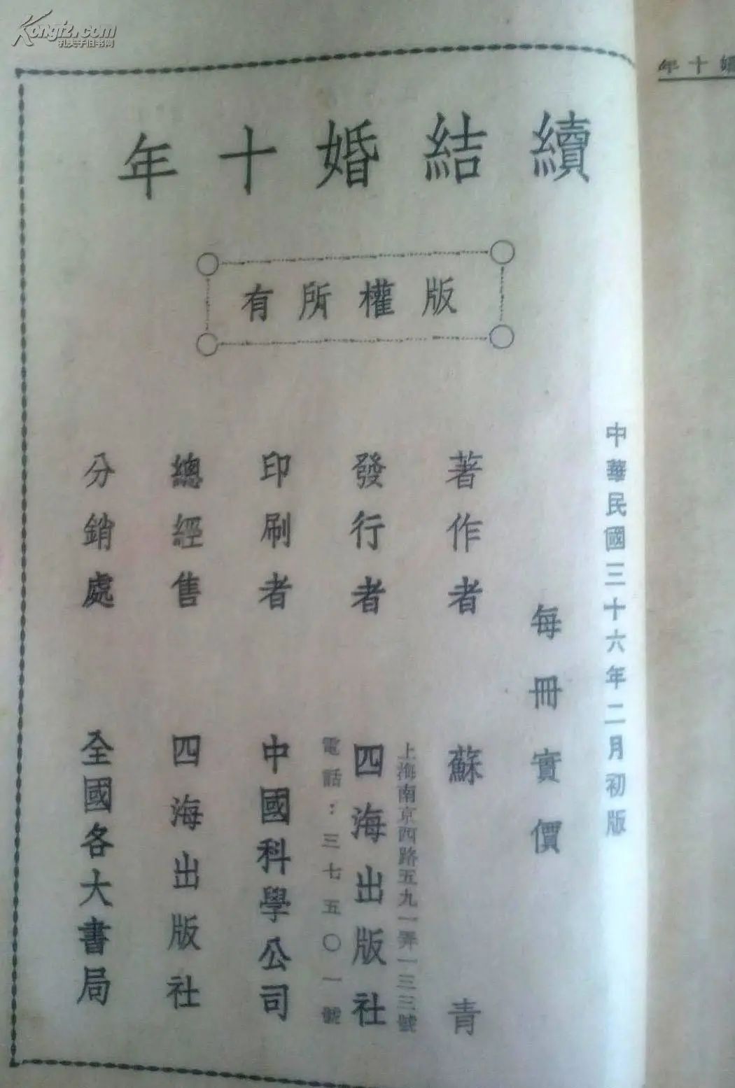 1943年5月开始连载的《结婚十年》印了36版,是出版业的奇迹。