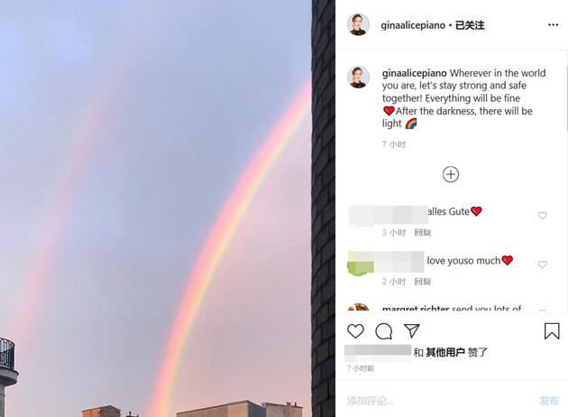 随后,她还附上一张彩虹的照片,暗示着“经历完风雨后,就会有彩虹”,以此为大家加油打气。