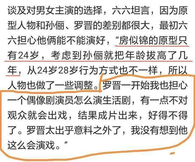 偶像剧和生活剧有很大的差别,偶像剧只要演员颜值高就一切都好说,而生活剧则非常考验演员的演技,六六刚开始非常担心偶像剧出生的罗晋演不好生活剧,有一点不对观众就会出戏,但六六没想到成品出来后,罗晋的表现会出乎她的意外。