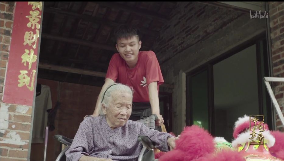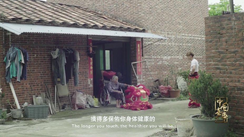 末了,华仔让奶奶摸摸狮子头,摸狮子头能长寿哦。