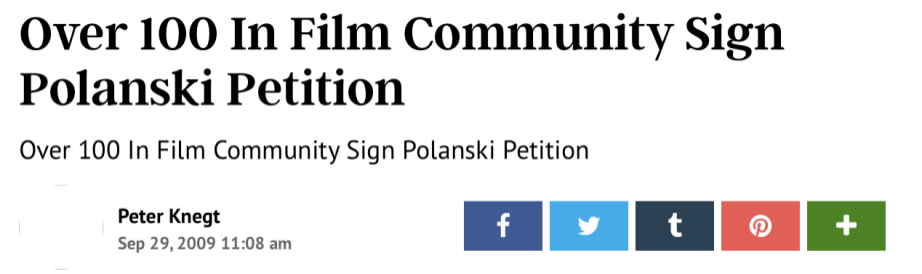 十多位演艺圈女性主动跳出来,指控幼时曾受到波兰斯基的「侵犯」(基本上发生在70年代左右)。