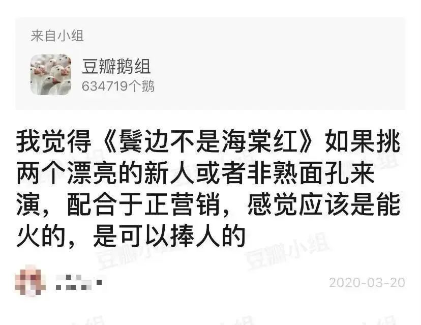 有人说,如果《鬓边》挑两个漂亮的新人或者非熟面孔来演,感觉应该是能火的,毕竟可以捧人。