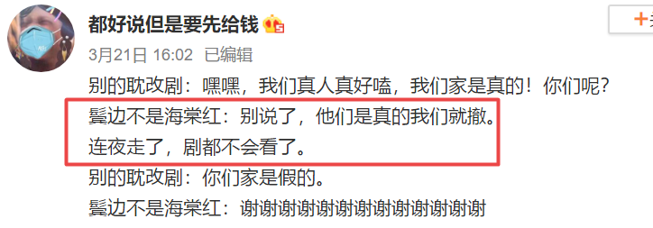 鬓边:别说了,他们要是真的我们就撤。连夜走了,剧都不会看了。