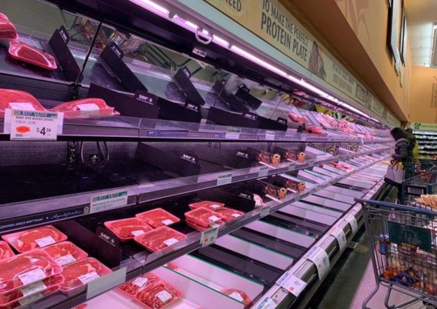 3月15日,徐娇在社交网上分享疫情现况下的美国生活,照片中的超市架上空了许多,米也开始有购买限制了。
