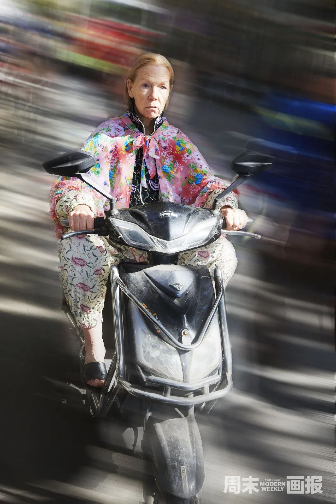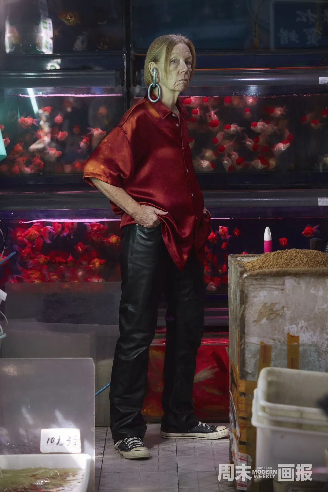 她甚至还穿着大花枕巾拼接成的抹胸裙去到便利店,跟几位穿红戴绿的中国阿姨一起拼星星合照。但这一切跟猎奇无关,Kathleen不像个闯入者,更像是原本就生活于其中的参与者。