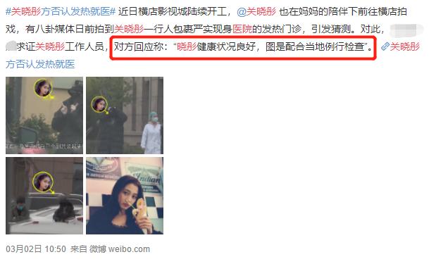 因为两人是在医院的发热门诊被拍,有消息称关晓彤被隔离,引发网友们的担忧,后来关晓彤的工作人员回复关晓彤是配合当地的例行检查,身体状况良好。