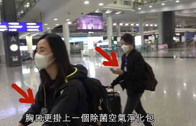 当天郑伊健和老婆身穿黑色情侣装一同现身,在机场这样人员复杂的地方,他们也是做足了防疫措施,除了戴好口罩之外,夫妻俩的胸前更各挂着一个除菌空气净化包。