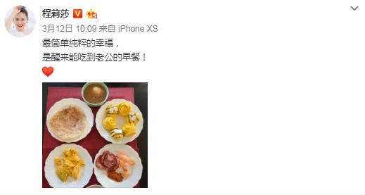 这段特殊时期,宅在家中的程莉莎也频繁更新社交动态分享一些生活日常,从程莉莎的分享中可以看到,宅家时光老公郭晓东简直不要太宠她,变着花样为她做各种爱心餐。