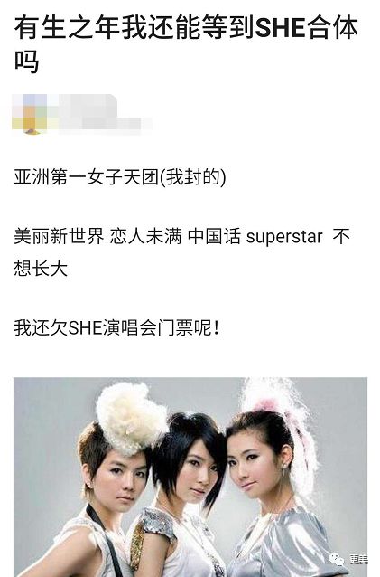 SHE会过气吗?其实她们像周杰伦、蔡依林,林俊杰、杨丞琳、张韶涵、Twins、五月天这些人一样,早已变成了一个时代的符号,一种只有80后和90后用来解锁回忆的标签。