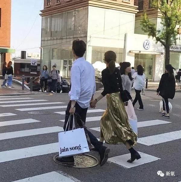 不仅要帮女朋友提东西,过马路也要手牵手!