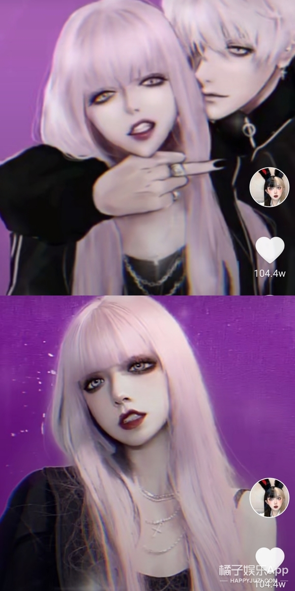这位雌雄莫辨的美人是个抖音小网红,ID叫@超不可爱小朋友,走的就是古典路线。