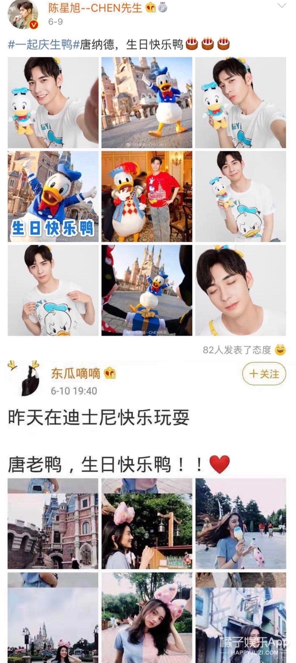 两个人还先后用相似的文案发微博,似乎是一起逛了迪士尼?