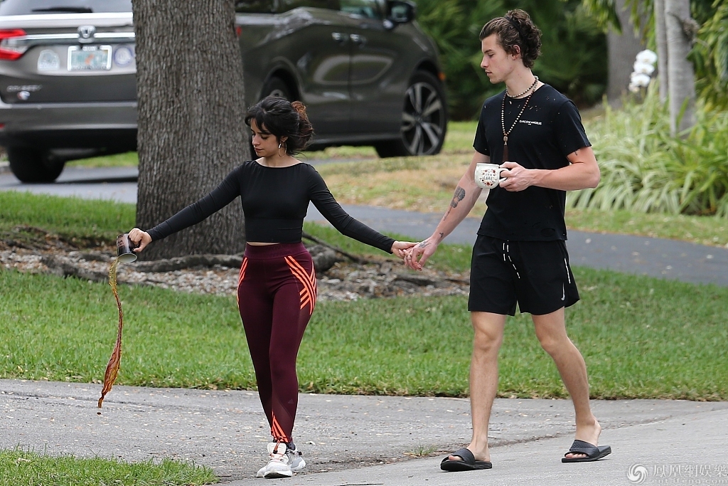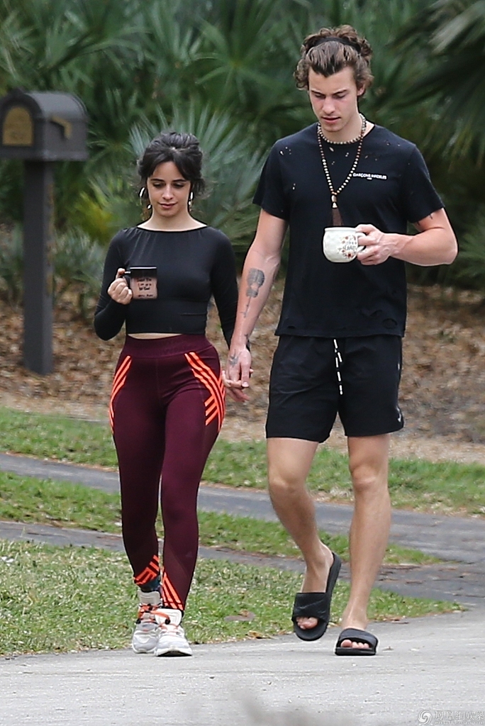 当地时间2020年3月26日,美国迈阿密,卡米拉·卡贝洛(Camila Cabello )和肖恩·蒙德兹(Shawn Mendes)现身街