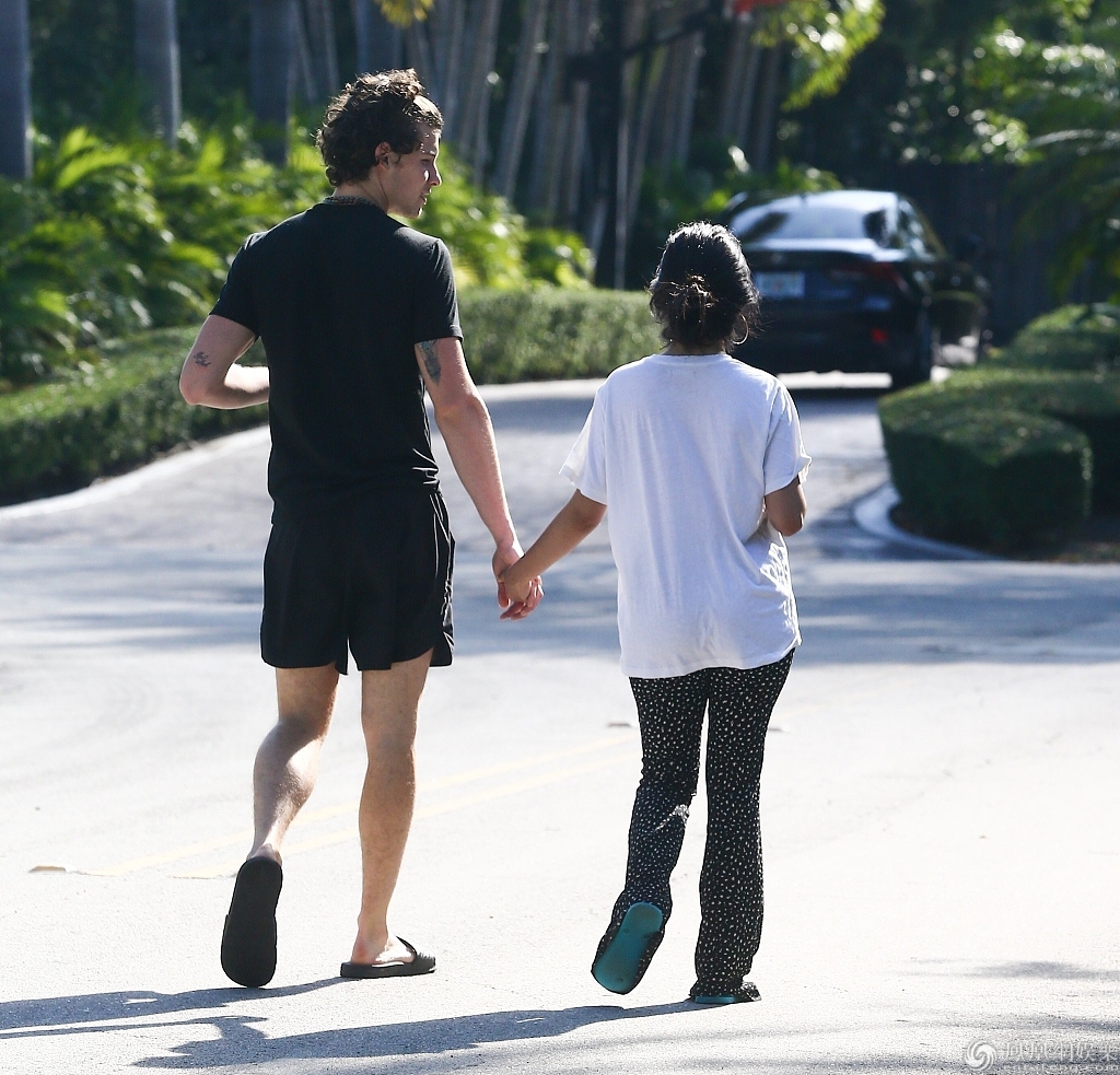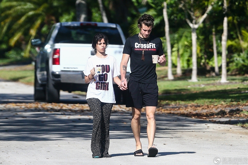 卡米拉·卡贝洛与“萌德”同穿T恤,手牵手上街散步。