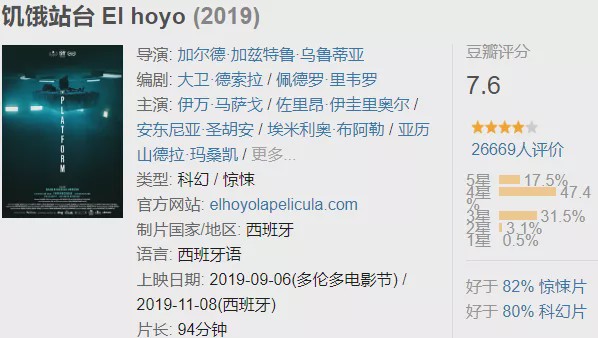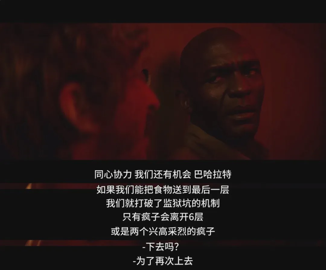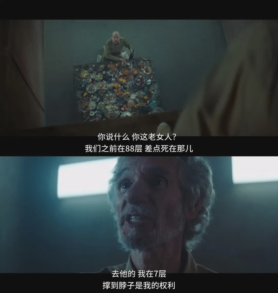 包括社会制度、阶级分配、人性善恶在内的一系列深入思考,都通过垂直监狱这样一个反乌托邦的浓缩社会,在最短的时间内积聚爆发。