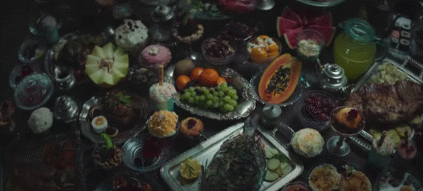 每天,都会有一桌盛宴通过方形洞从顶层向底层输送。上面的人,可以吃到美食佳肴。下面的人,只能吃到残羹冷炙。更下面的人,甚至一无所得,进而走向互相残杀……