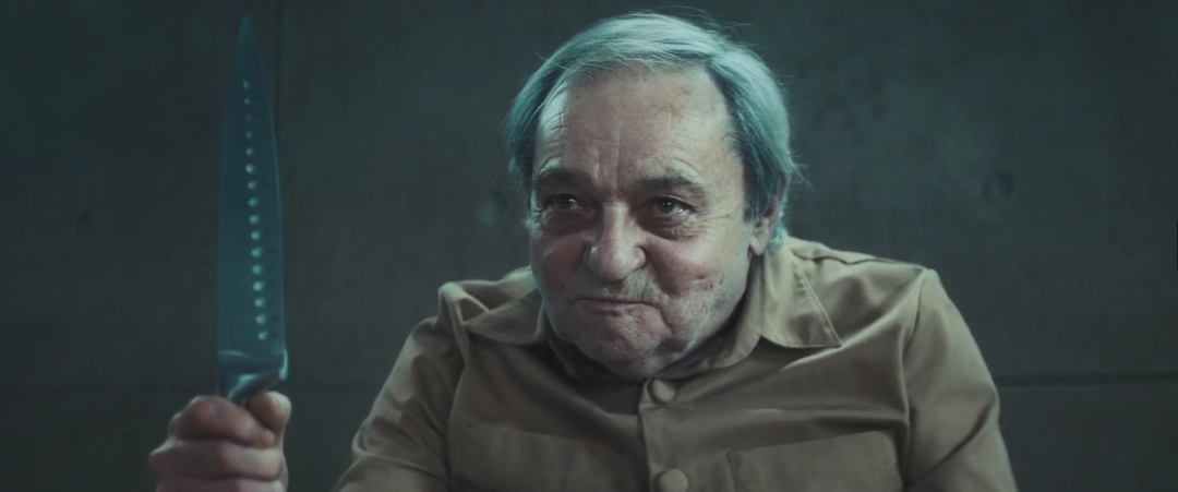 老头死后,他依靠尸体上的蛆虫为食,产生幻觉,与女演员发生关系。