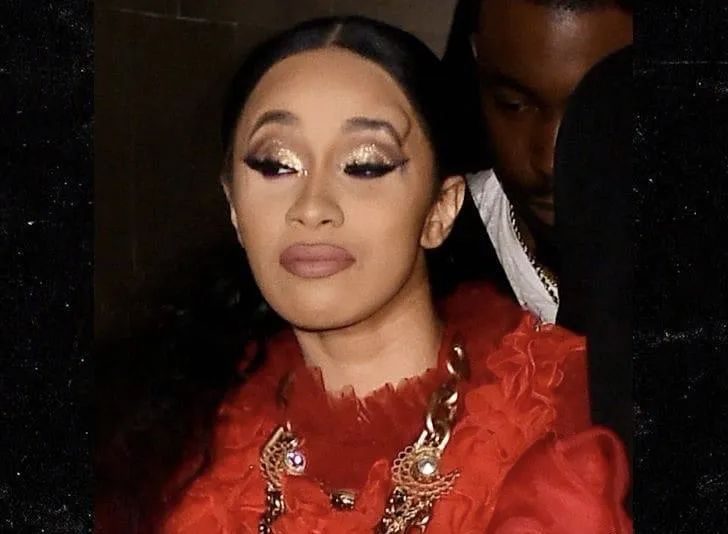 当晚,打扮得光彩照人的卡迪碧,顶着左额头鼓鼓的一个包,好不狼狈地离开现场,但满脸的桀骜依然看得见。