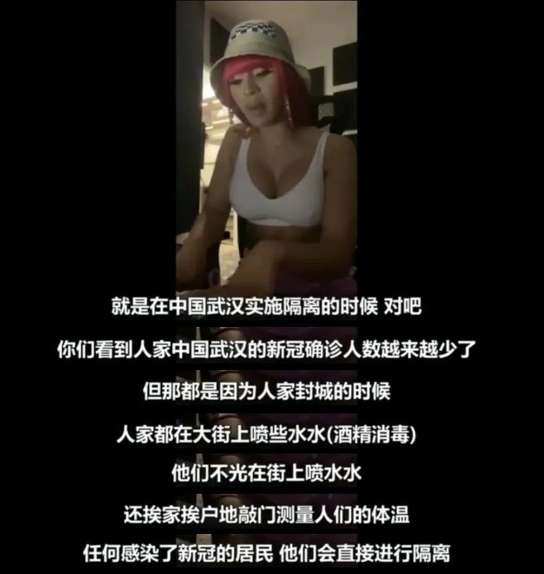 就在中国网友对卡老师“上个国外电视节目激动成这副样子”表示疑惑时,在随后的直播中,卡迪碧真诚地赞扬了中国在疫情中封城、喷水水(消毒水)、及时隔离等举措。