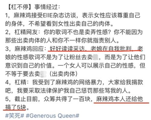 比如以麻辣鸡 、Cardi B为代表的女rapper,经常一言不合就开怼,管你是粉丝、杠精还是黑子。