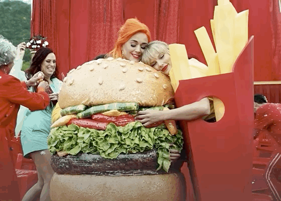 俩人弯弯绕绕好几年,直到2018年才冰释前嫌,去年还合体在泰勒新歌《You Need To Calm Down》的MV中以汉堡和薯条的形象出演,看起来一副亲密无间的样子。