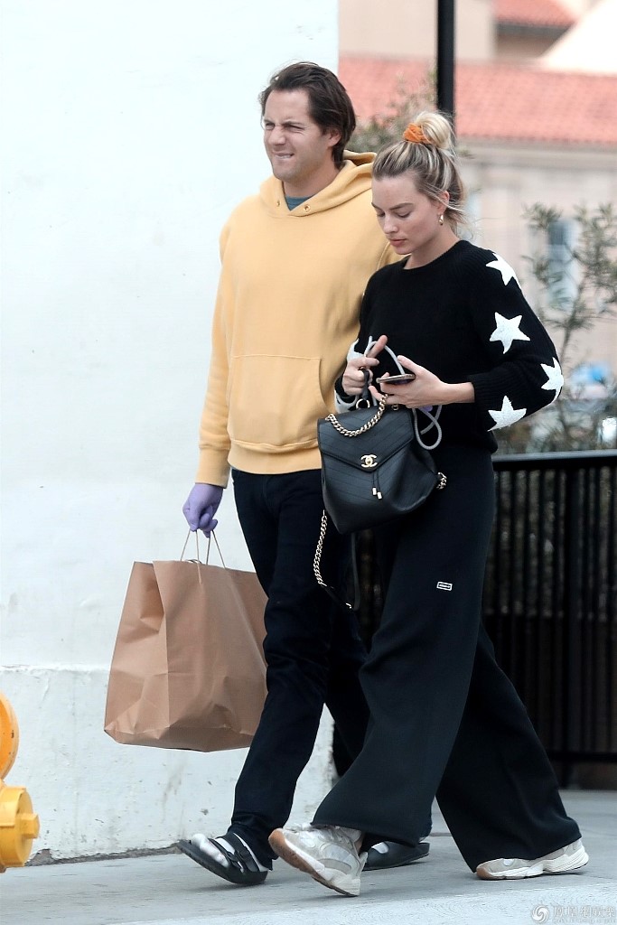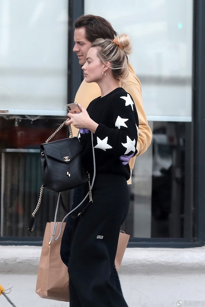 “小丑女”玛格特·罗比穿星星毛衣时尚吸睛,外出逛超市获丈夫陪同护驾,俩人一路甜笑热聊恩爱十足。