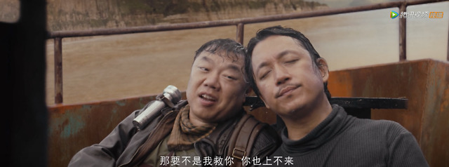 在黄河斗完铁头龙王,王胖子和胡八一瘫在船头。