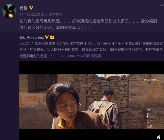 编剧在微博上也点明提到了这段长镜头,表示自己能碰上这么用心呈现故事的创作团队,非常幸运了: