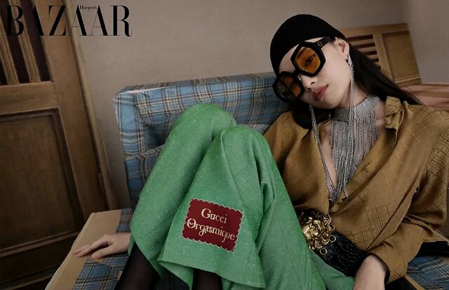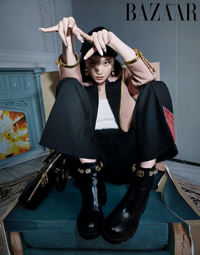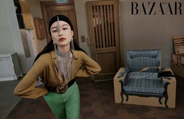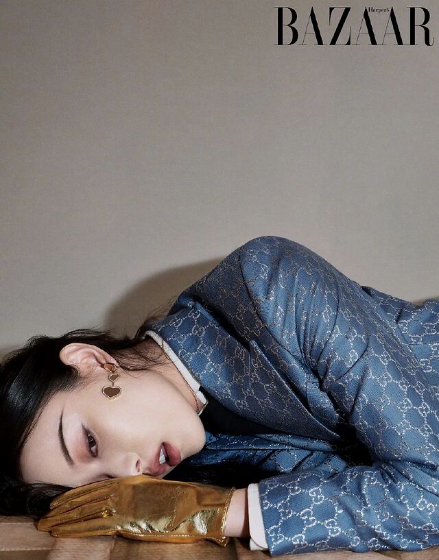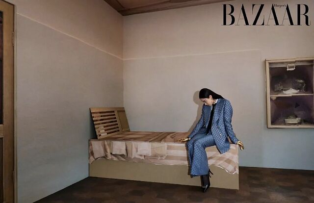 “喵总”倪妮登上内地版《时尚芭莎》四月刊的封面,全套Gucci造型,是完美的Gucci女孩没错