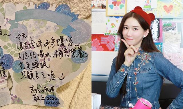 林志玲在卡片上写着:"感谢您的无畏无惧,感谢您的无私无怨,感谢您的泪水汗水,感谢您的用心守护。今天让志玲姐姐守护您,别忘记喝水、补充营养、充足睡眠、照顾自己喔。"在寄语最后还画着一个笑脸,非常用心。