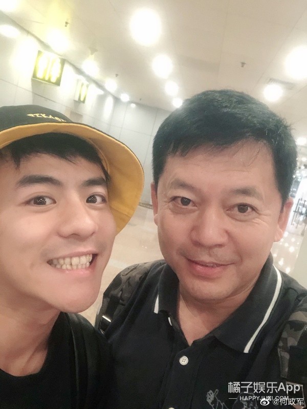 去年他也在微博发了一张和剧中儿子张直绿偶遇的照片